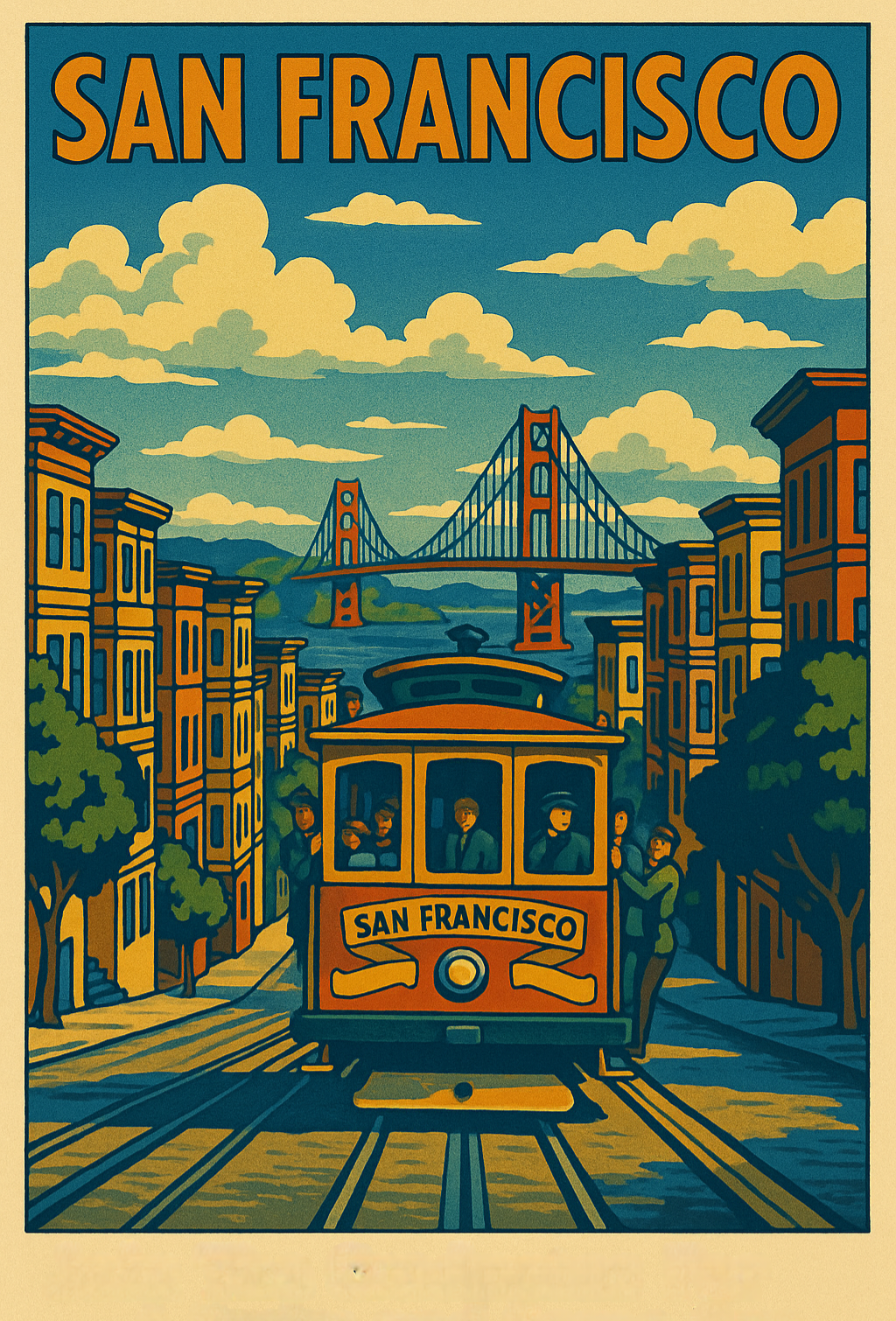 Experience the thrill of San Francisco with this striking depiction of the iconic Cable Car cruising against the majestic Golden Gate Bridge backdrop. Perfect for those who dare to embrace adventure and timeless urban charm, this piece captures the spirit of a city that never stops moving. Add a bold statement to your collection and celebrate the fearless energy of San Francisco’s streets.